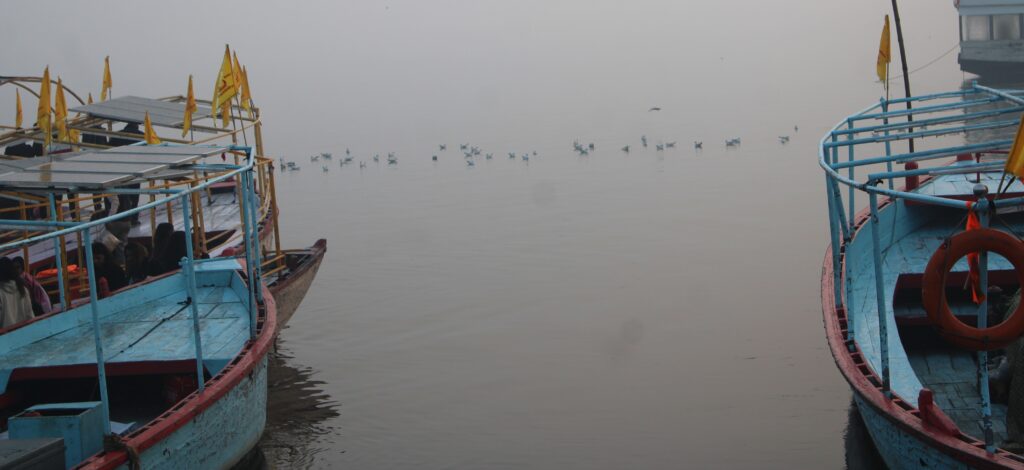 Peace and serenity at the Ganga River bank will help you find your inner self.  Fire burning 24 hours a day at Manikarnika ghat is going to take you on a different path of salvation.  Chants of mantras in the air are mesmerizing.  Saints bathing on the ghat, the noise of thousands of squeaking birds, and boats roaming in the river are visually awe-inspiring. Boat-ride is quite famous among new couples and families. The exotic scene of ghat from mid-river is irresistible.